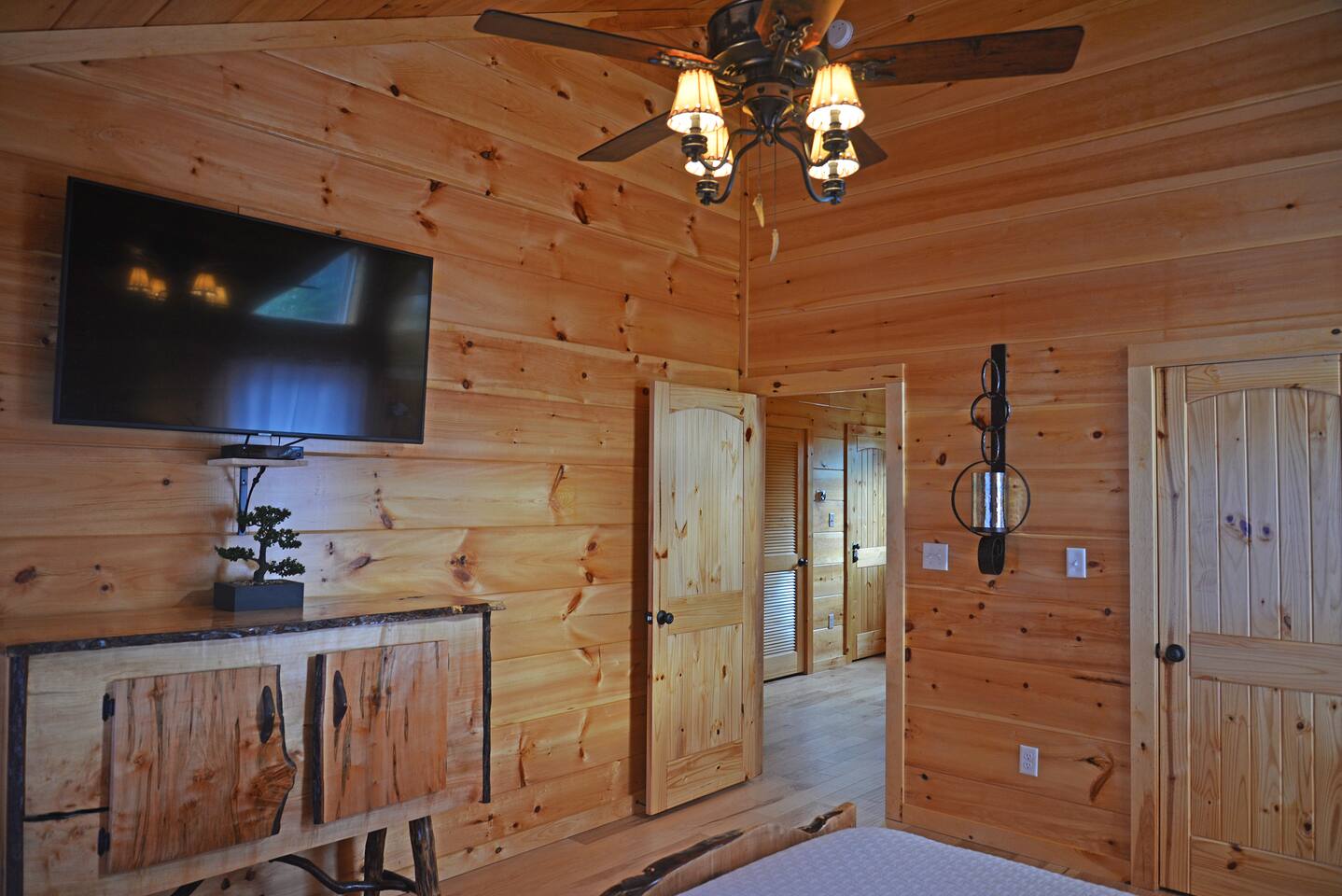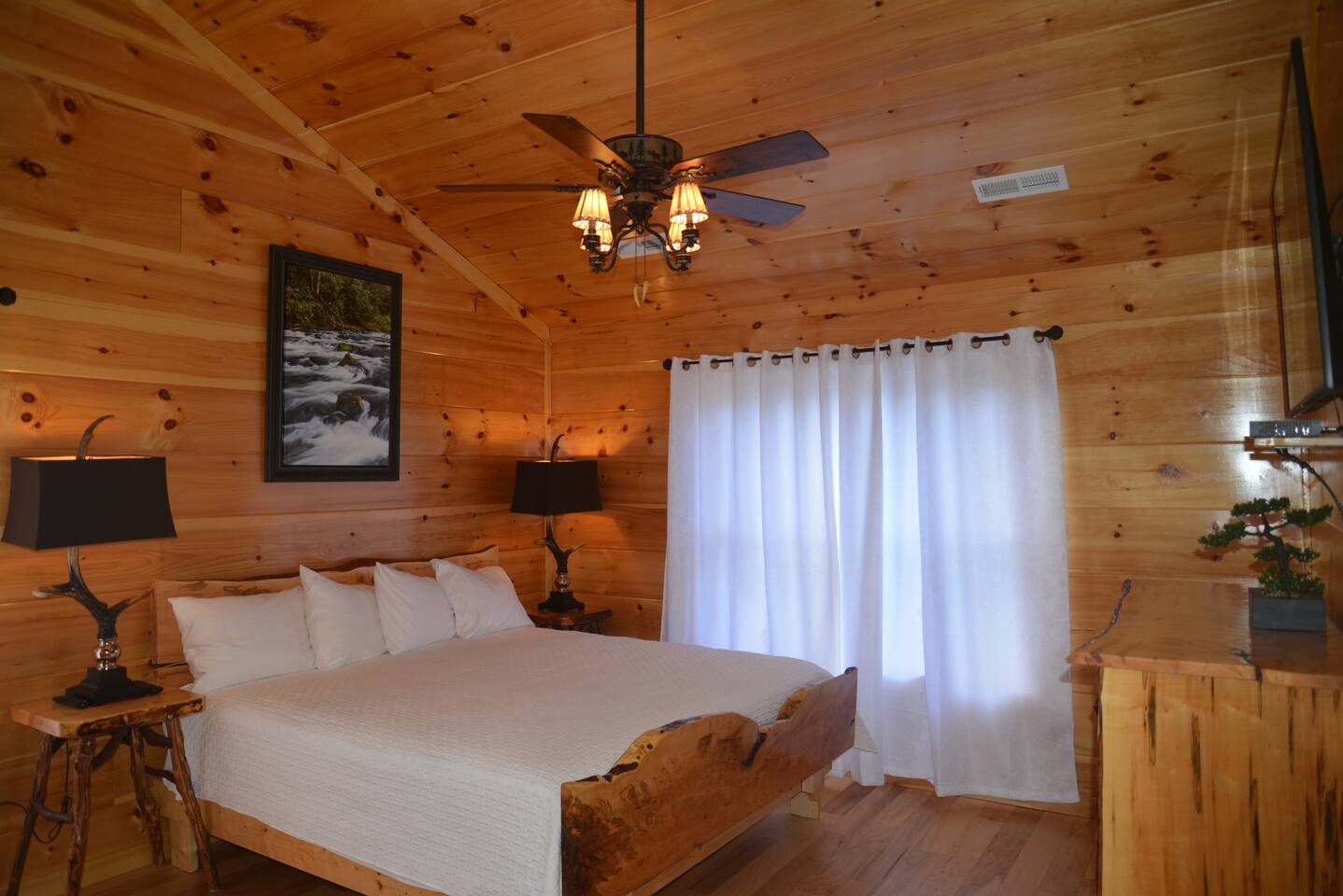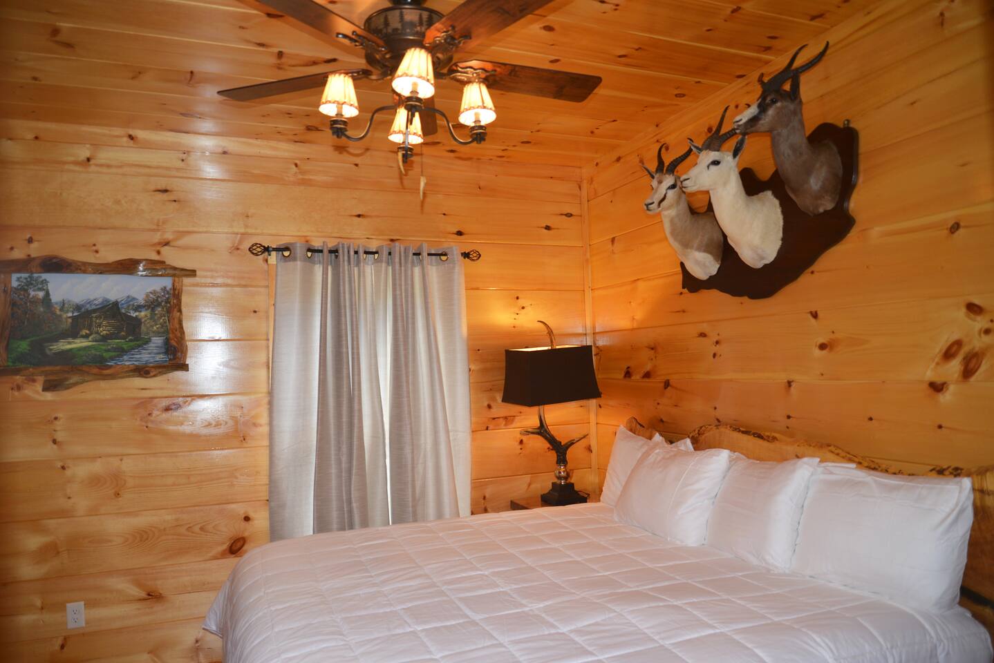 Luxury Log Home Convenient to Downtown! 5 King Master Suites with full baths, Downtown Convenience, Views, Upscale & Fully Outfitted for your vacation pleasure. Stacked Stone gas log fireplace in great room, 60 games on multi-arcade in game room, card/ poker table, 8 smart tv's, charcoal grill & so much more. Large Jacuzzi on spacious deck. No Steps, Easy Cabin Entry on Level Lot. Neighborhood bears spotted frequently in our yard! You will love our cabin as much as we do.