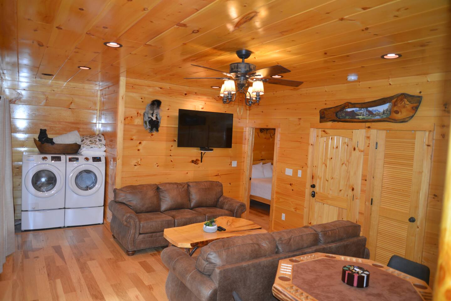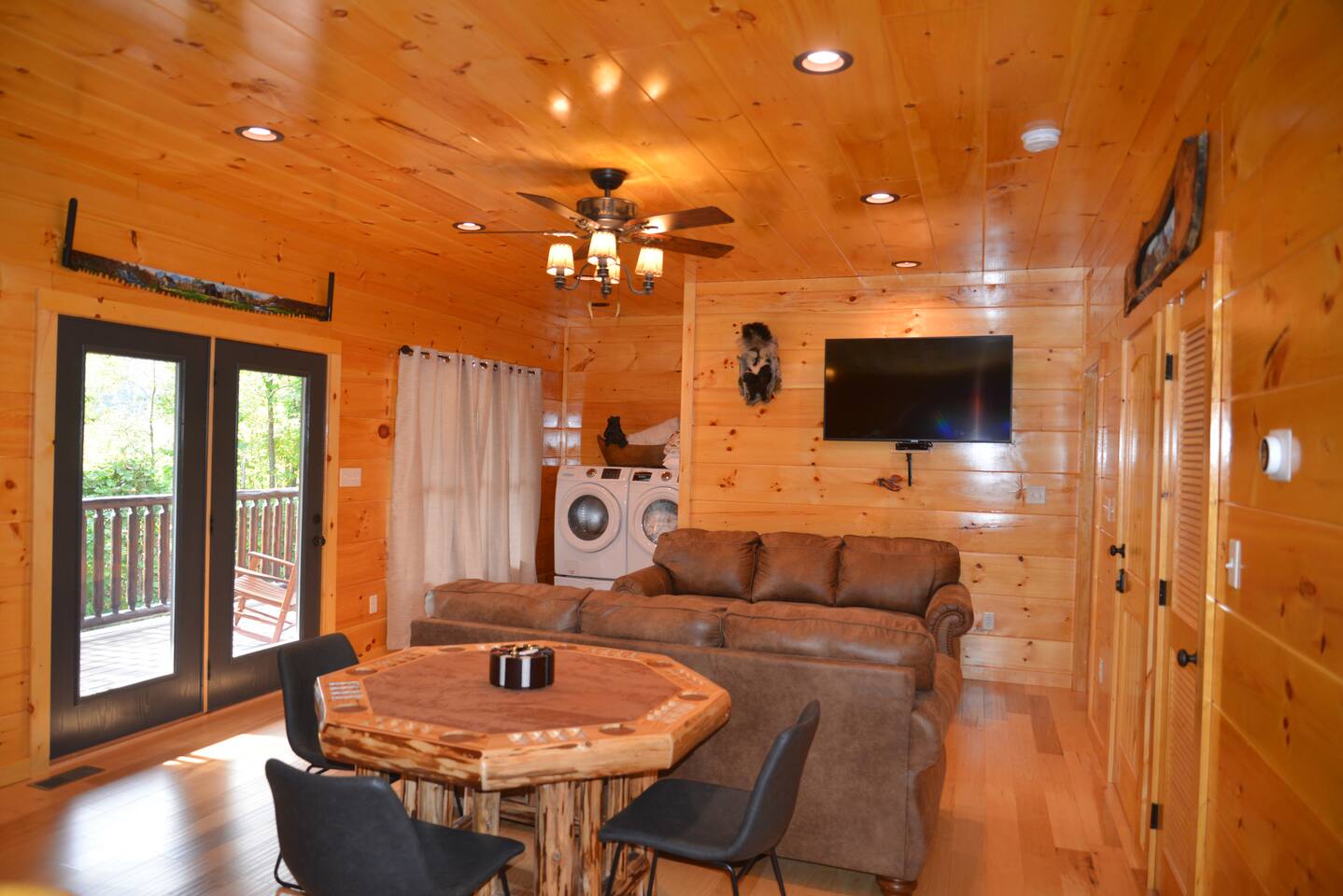 We love the convenience of our neighborhood to downtown yet a part of the Smoky Mountains, bears as well as other wildlife frequent our yard. Our guests regularly send photos and videos bear watching form our decks. There are 3 living rooms in this 5 bedroom 5 bath cabin so plenty of room to spread out or come together.