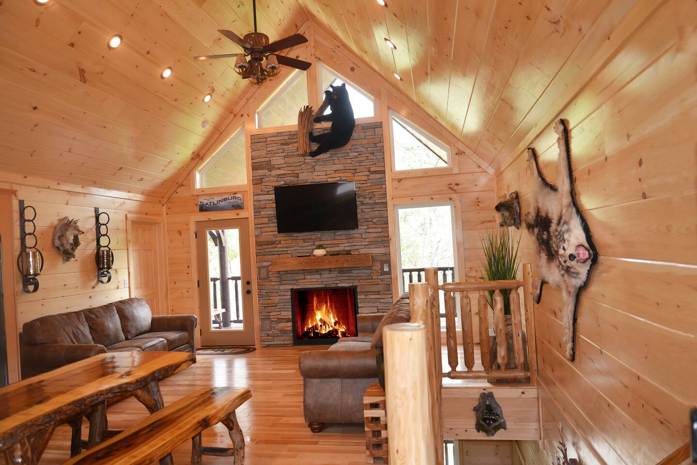 Location, Location, Location! In addition to being a beautiful spacious Log Home with 4 master suites and gorgeous mountain views, we enjoy the convenience of the Trolley Stop at the bottom of the drive. We loved this location so much we have 9 Log Homes in the same area. Laurel Oaks Subdivision is behind the Little House of Pancakes and Alamo Steakhouse just off Hwy 321.