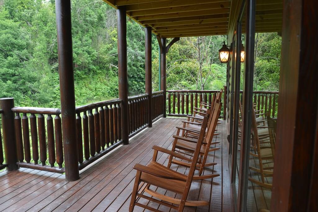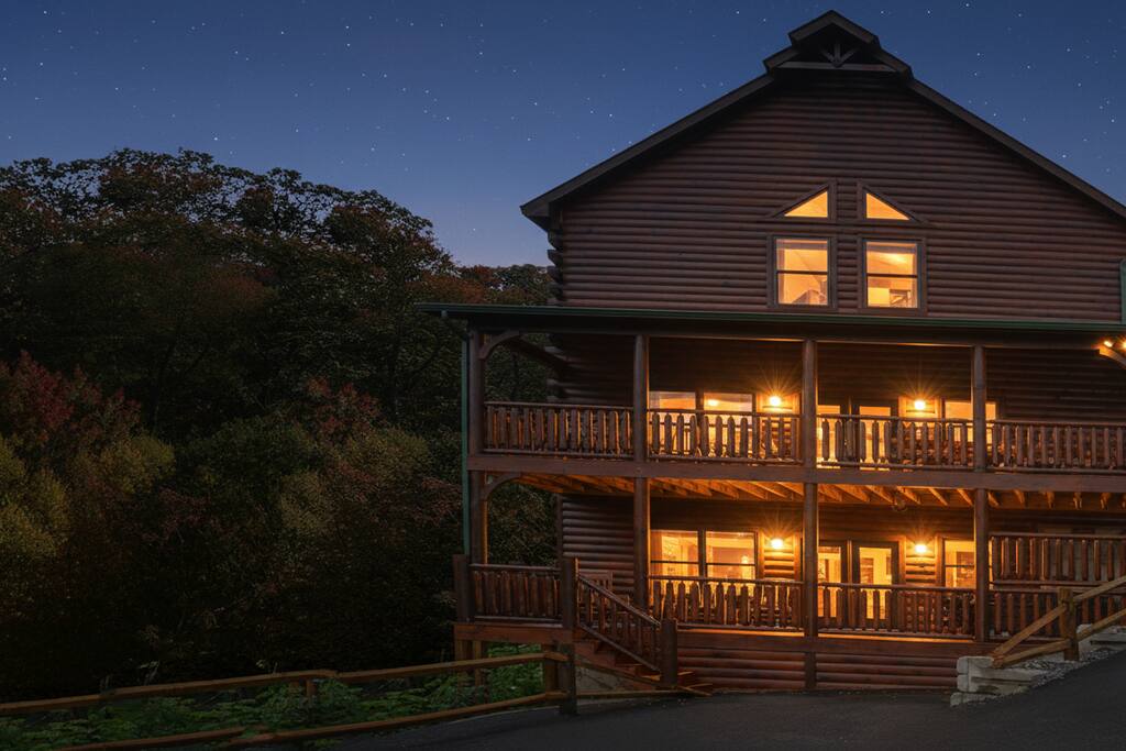 Location, Location, Location! In addition to being a beautiful spacious Log Home with 5 master suites and gorgeous mountain views we enjoy the convenience of the Trolley Stop at the bottom of the drive. We loved this location so much we have 9 Log Homes in the same areaJust off Hwy 221 Behind the Little House of Pancakes and the Alamo Steakhouse.